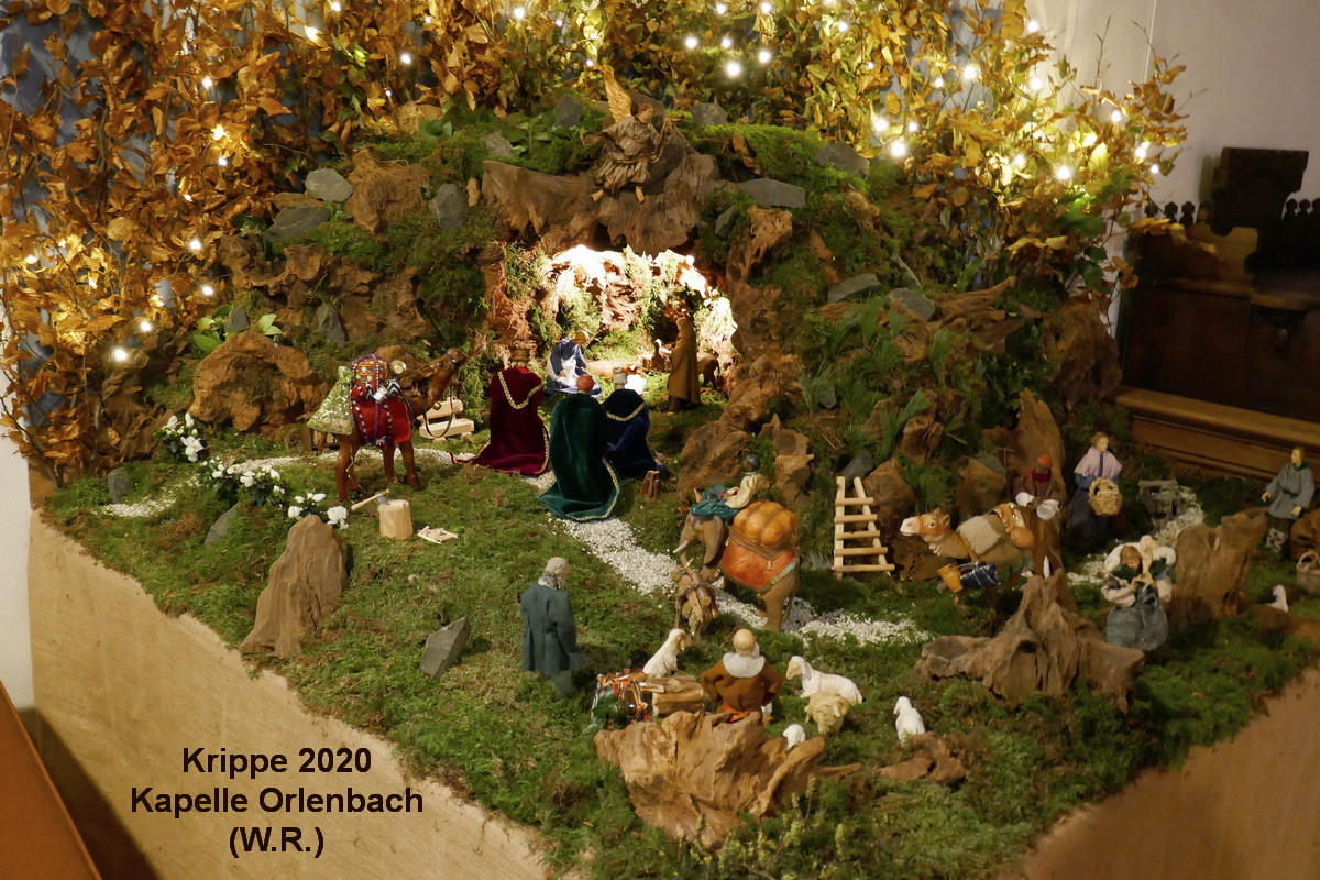 Die sehenswerte und mit vielen schönen Einzelelementen gestaltete Krippe in der Kapelle Orlenbach kann vom 27. Dezember 2025 bis zum 01.01.2026 jeweils von 14.00 Uhr bis 17.00 Uhr besichtigt werden. Dazu erklingt weihnachtliche Musik, und es werden auch Plätzchen angeboten. Die Orlenbacher "Krippenbauer"freuen sich auf viele Besucher.