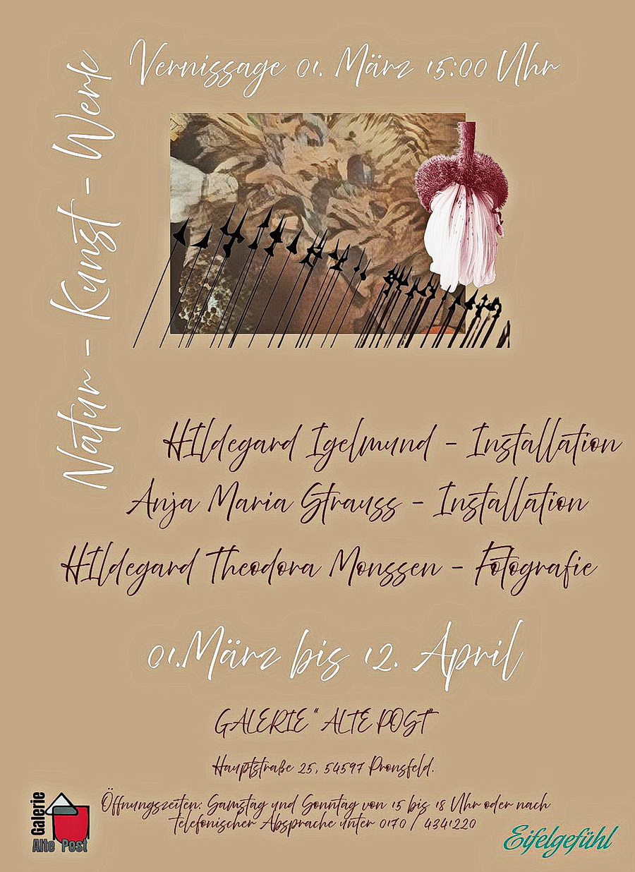 Am 1.März öffnet die neue Frühjahrsausstellung "Natur-Kunst-Werk" ihre Pforten und ich lade Sie / Euch herzlich in die Galerie Alte Post ein.