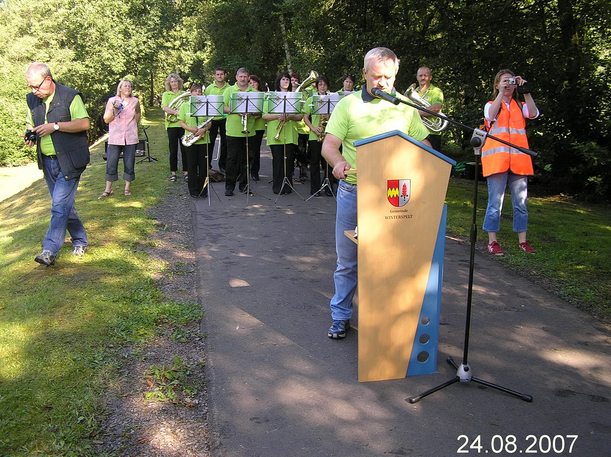 Am Rednerpult Bgm. Söhngen, im Hintergrund: Musikverein Winterspelt