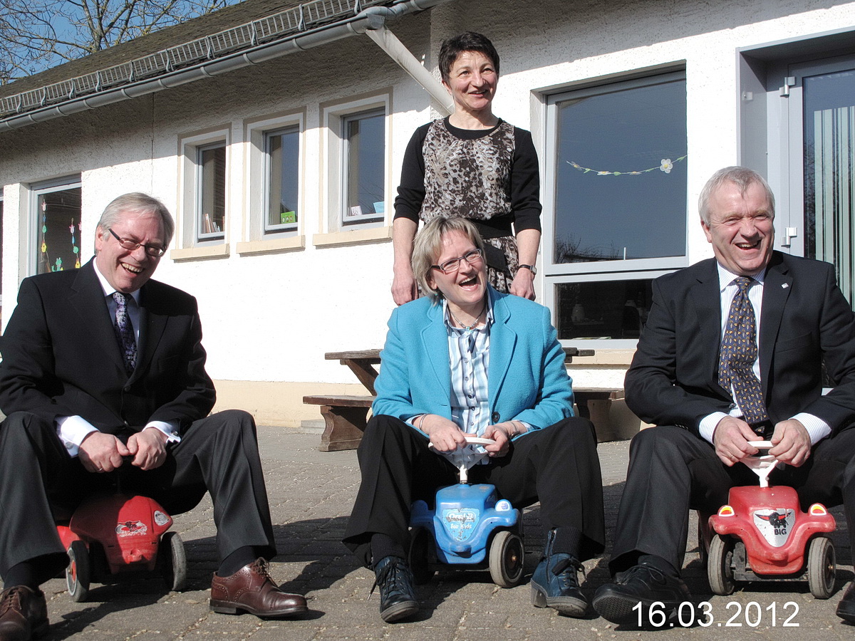 Direktor der Milch-Union-Hocheifel Rainer Sievers, Ortsbürgermeisterin M. Winkelmann, Bgm. Söhngen, Stehend: KiTa -Leiterin Maria Hack