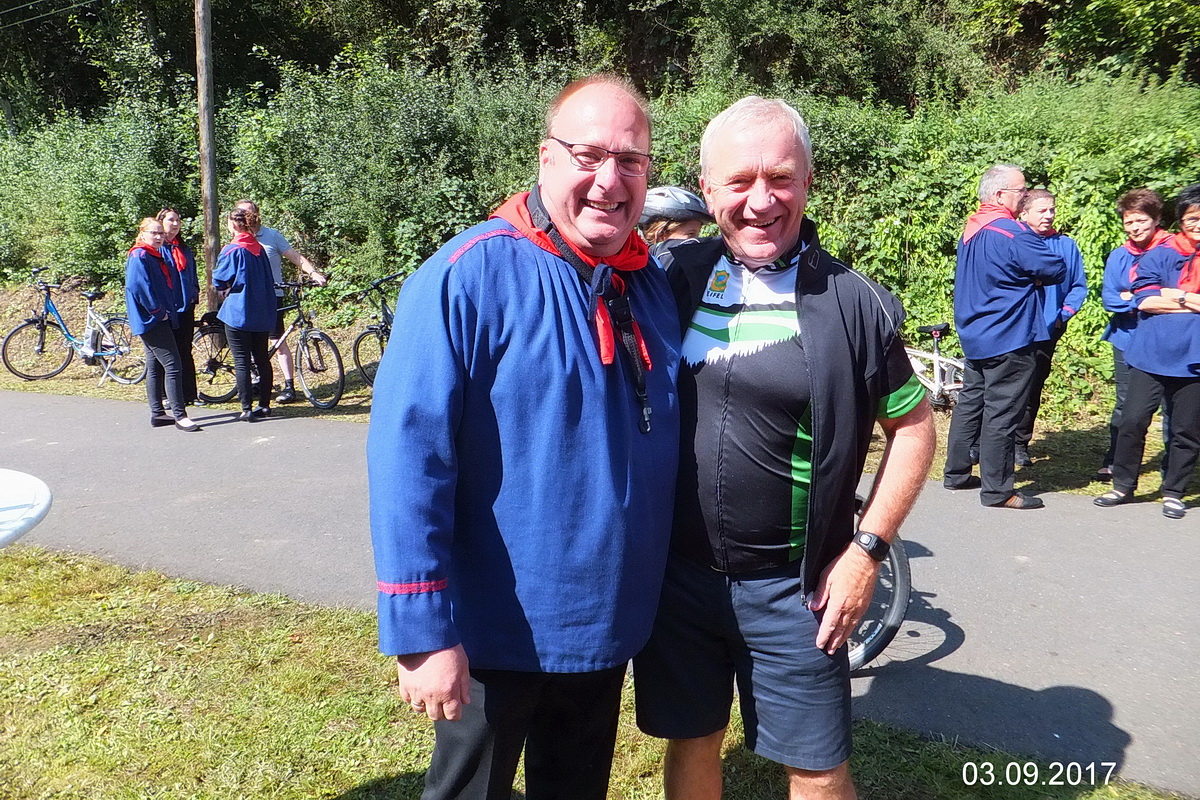 2017: Zwei "lustige Prümtaler" : Michael Christen im Bauernkittel und unser Bürgermeister im Radsportdress