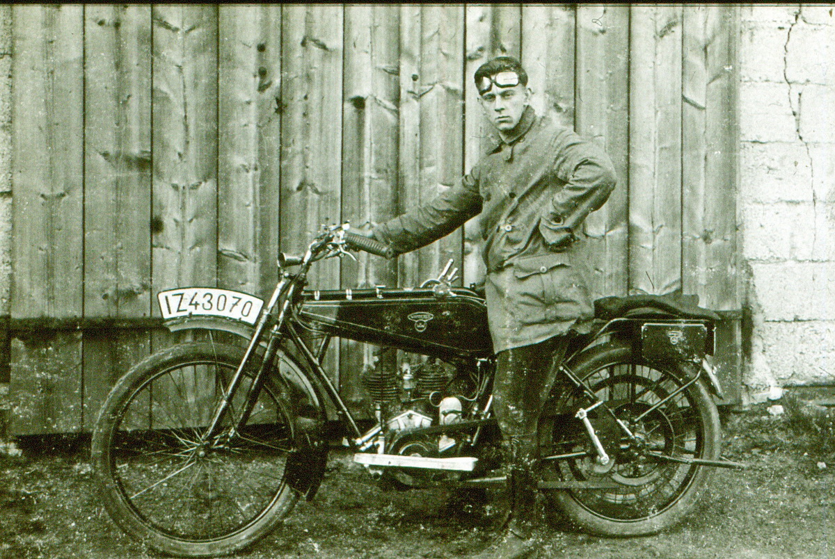 Rechts im Bild der Firmengründer Josef Mais mit einer DKW - Maschine.(DKW ursprünglich:Dampfkraftwagen)