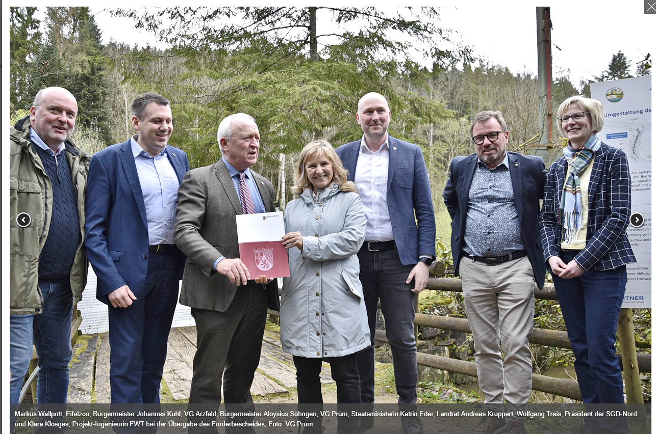 Unvergessen bleiben wird das verheerende Hochwasser an Alf und Bierbach , das sich am 01. Juni 2018 infolge eines lokal begrenzten Starkregens ereignete. Die Wasserfluten richteten in den Talgemeinden enorme Schäden an. So wurden u.a. etliche Häuser unter Wasser gesetzt, einige Wege und auch die Radwegbrücke über die Bier regelrecht weggerissen, der Eifelzoo wurde verwüstet, Wiesen und Felder mit Schlamm und Geröllmassen bedeckt. Heute nach rund 8 Jahren sind die Schäden dieses Hochwassers weitgehend beseitigt. Um künftig besser gegen solche Starkregenereignisse gewappnet zu sein, wurde bereits 2019 von den betroffenen Verbandsgemeinden Prüm und Arzfeld eine Studie in Auftrag gegeben, die eine Verbesserung des Hochwasserschutzes und der Gewässerökologie zum Ziel hat. Nach Vorliegen der Planunterlagen und der Genehmigung durch das Land Rheinland-Pfalz hat der Verbandsgemeinderat Prüm in seiner letzten Sitzung die Durchführung beschlossen. Es entstehen voraussichtlich Gesamtkosten in Höhe von rund 1,8 Millionen Euro. 90% an Förderung durch das Land werden im Rahmen der „Aktion Blau“ erwartet. Den Rest teilen sich die Verbandsgemeinden Prüm (75%) und Arzfeld (25%) auf. Am 9. April 2024 übergab die rheinland-pfälzische Umweltministerin Katrin Eder im Eifelzoo einen Förderbescheid in Höhe von 855 000 € an die verantwortlichen Gremien.