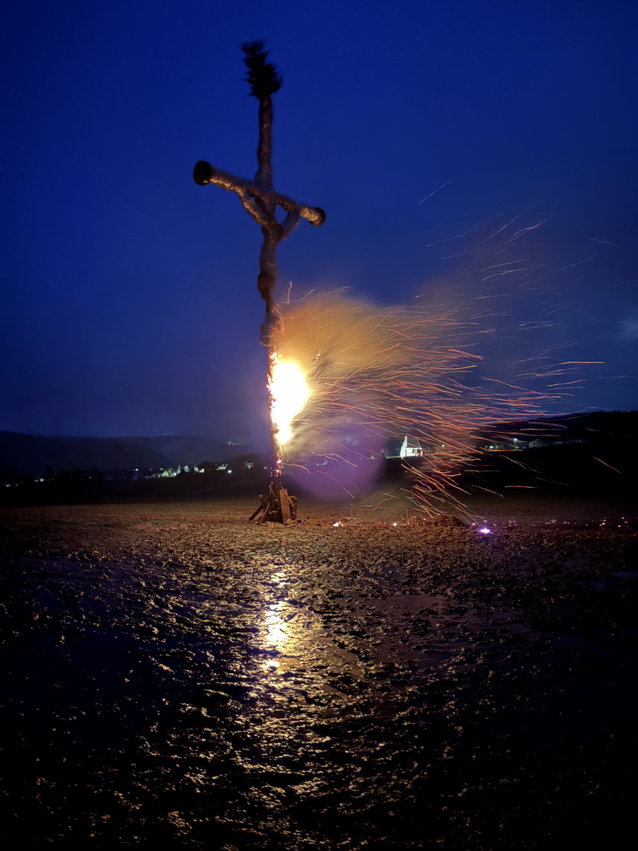 Der uralte Brauch des „Burgbrennens“, der traditionsgemäß am 1. Fastensonntag durchgeführt wird, verlief in diesem Jahr unter erschwerten Bedingungen. Dauerregen verlangte allen Brauchtumspflegern -ob jung oder alt – einiges ab. Die Prüm war sogar über die Ufer getreten und kam dem Burgplatz der „Mitteldorfer“ recht nahe. Alle Burgplätze waren total aufgeweicht und verwandelten sich während der Arbeiten in glitschige Schlammlandschaften, und so wurde das „Burgbrennen“ zu einer regelrechten „Schlammschlacht“. Dennoch ließen sich alle Teilnehmerinnen und Teilnehmer die Begeisterung an der Durchführung des Brauches nicht nehmen und allen machte es trotzdem Spaß, wie die fröhlichen Gesichter Fotos beweisen. Die Mütter und Frauen werden weniger Freude gehabt haben, denn sehr wahrscheinlich mussten sie die verdreckten Klamotten wieder in Ordnung bringen. Frühlingshafte Temperaturen und sonniges Wetter nach dem Burgsonntag lassen nun hoffen, dass der Winter bzw. das schlechte Wetter durch die Burgfeuer endgültig vertrieben wurde. Gedankt sei den „Burgsonntag-Reportern“ für die eindrucksvollen Fotos. Die Bilder stammen von: Michael Bachels, Thomas Peters und Sarah Urbanus. Danke !
