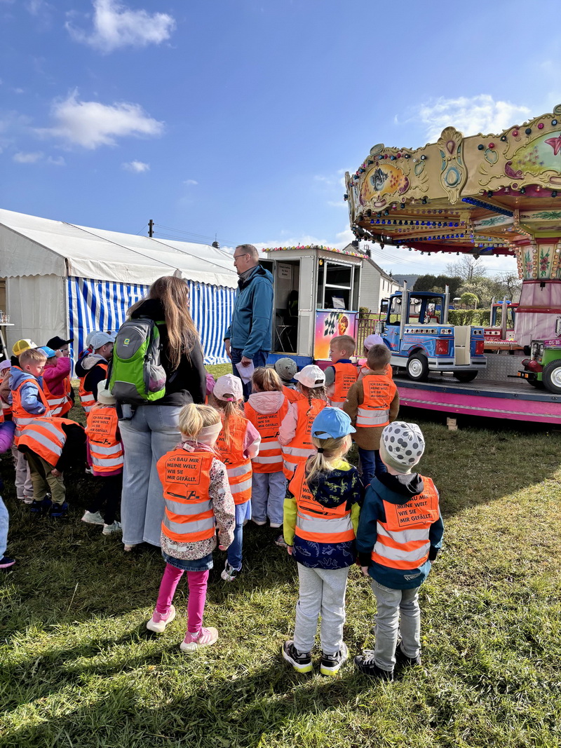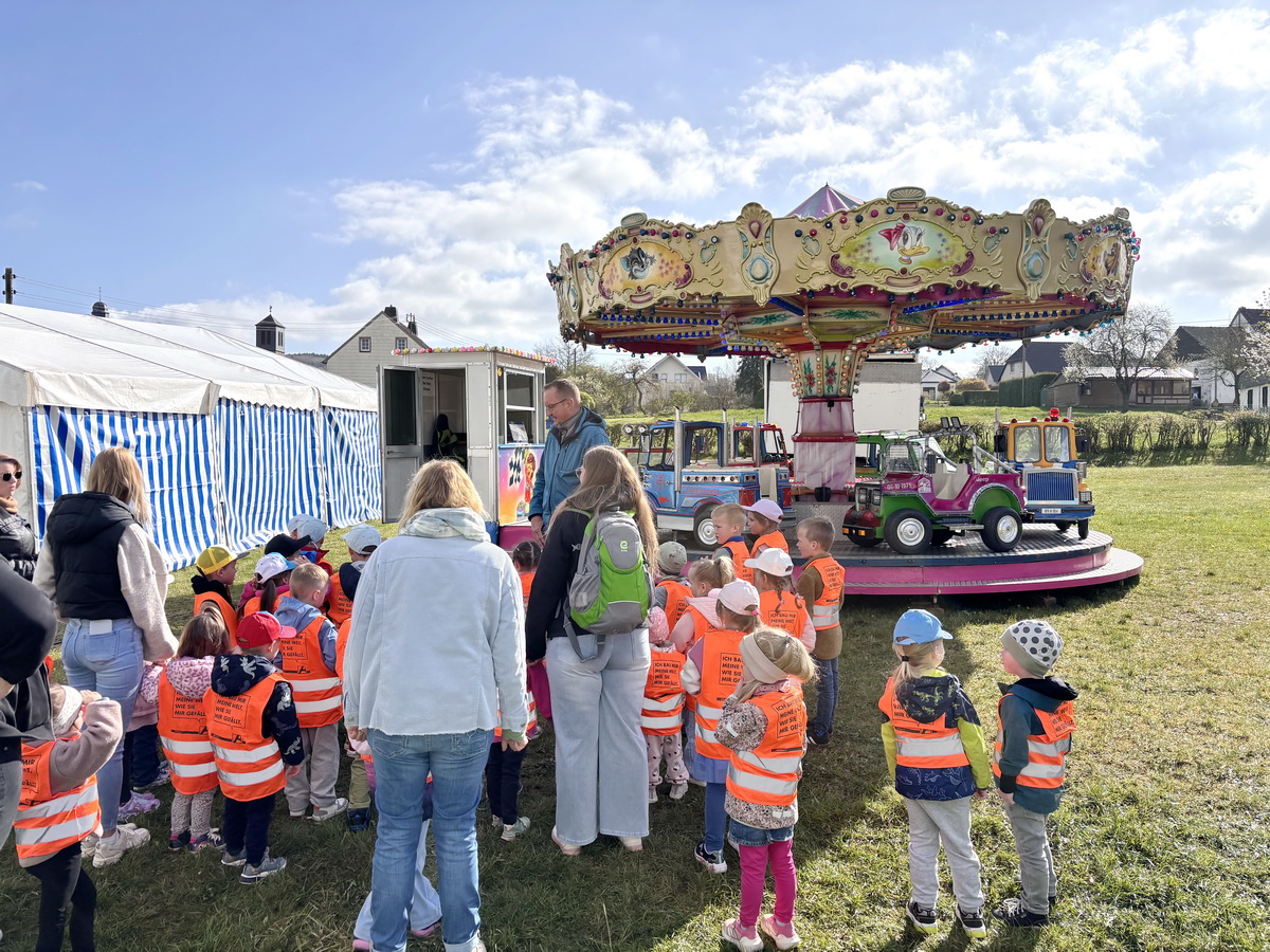 Ortsgemeinde Pronsfeld hatte alle Kinder zu einigen Sonderfahrten auf dem Karussell eingeladen. Freundlicherweise nahmen die Schausteller ihr Karussell extra für die Kita-Kinder in Betrieb, und so hatten alle einen Riesenspaß. „Die gesamte KiTa bedankt sich von Herzen für diese tolle Aktion!“, so die Leiterin Frau Quetsch zum Ortsbürgermeister, der vorher die Kinder und die Erzieherinnen auf dem Kirmesplatz begrüßt hatte.