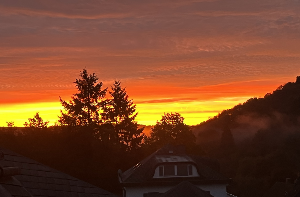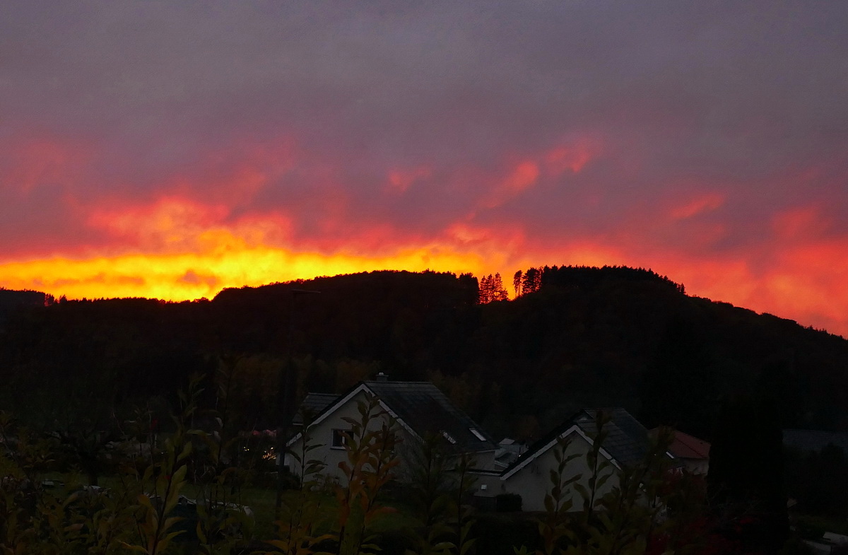 Morgenrot am östlichen Himmel über Pronsfeld am 31.Oktober 2025 07.00 Uhr