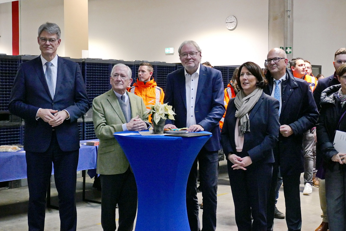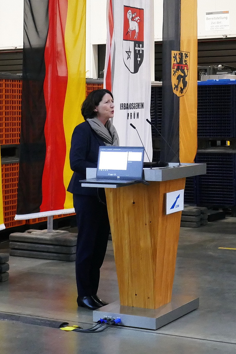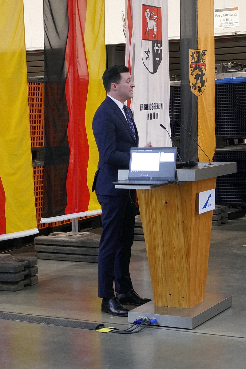 In einer Logistikhalle der Firma Stihl fand der Festakt anlässlich des „Spatenstiches“ mit geladenen Gästen, verschiedenen Firmenvertretern, Beschäftigten des LBM und interessierten Bürgerinnen und Bürgern statt. Der Chef des LBM – Gerolstein Bruno von Landenberg nahm die Begrüßung vor und gab Erläuterungen zum Projekt. Unter anderen konnte er vor allem den Verkehrsminister der Bundesrepublik Patrick Schnieder und die Wirtschaftsministerin des Landes Rheinland-Pfalz Daniela Schmitt besonders begrüßen. Beide hatten bereits einen erfreulichen Termin im Ahrtal anlässlich der Wiedereröffnung der Ahrtalbahn absolviert und freuten sich natürlich auch über diesen Termin in Weinsheim.