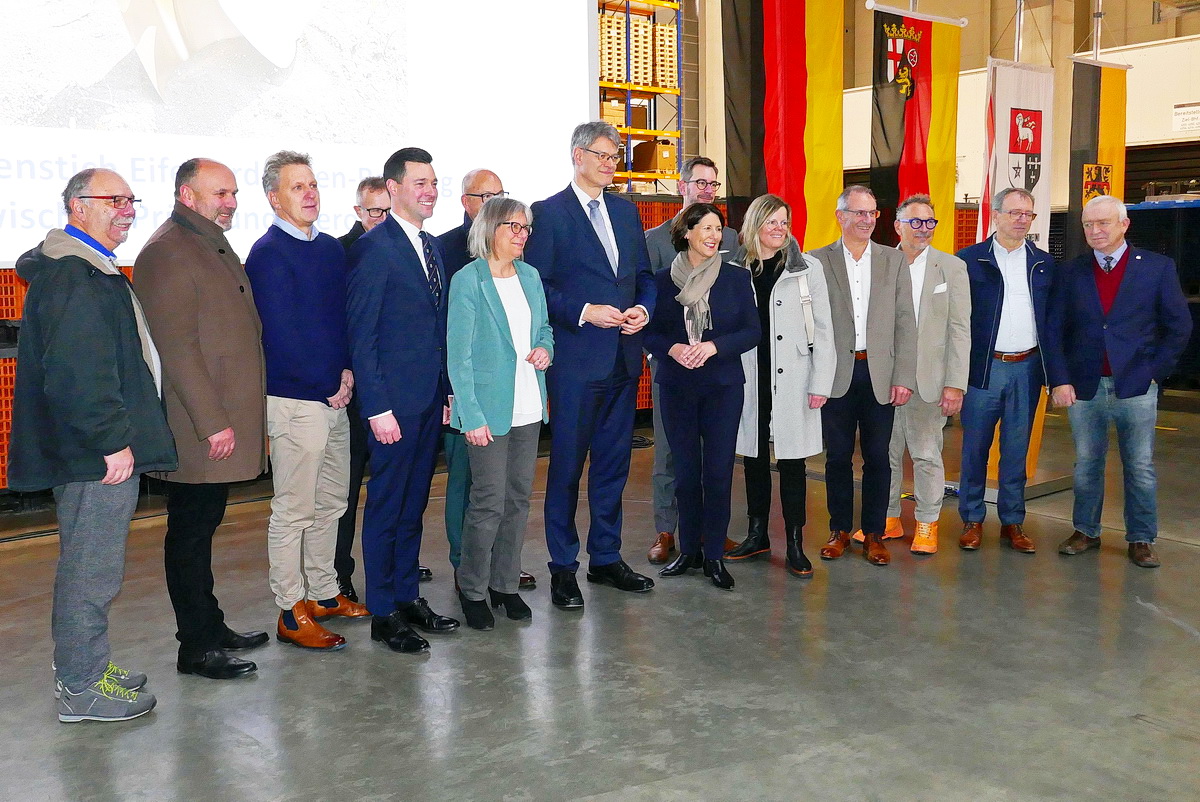 1.Reihe v.l.n.r.: Markus Fischbach (Stadtbürgermeister Prüm) , unbekannt, Hans-Peter Böffgen VG-Bürgermeister Gerolstein, Dr.Johannes Reuschen (VG Prüm), Steffi Lorisch (Stadtbürgermeisterin Gerolstein), Bundesverkehrsminister Patrick Schnieder, Wirtschaftsministerin RLP Daniela Schmitt, Julia Gieseking (Landrätin Daun), Udo von Landenberg (Chef LBM Gerolstein), Michael Ludwig MdL , Harald Endres (ehemaliger Chef LBM Gerolstein) Aloysius Söhngen (ehemaliger Bürgermeister der VG Prüm)