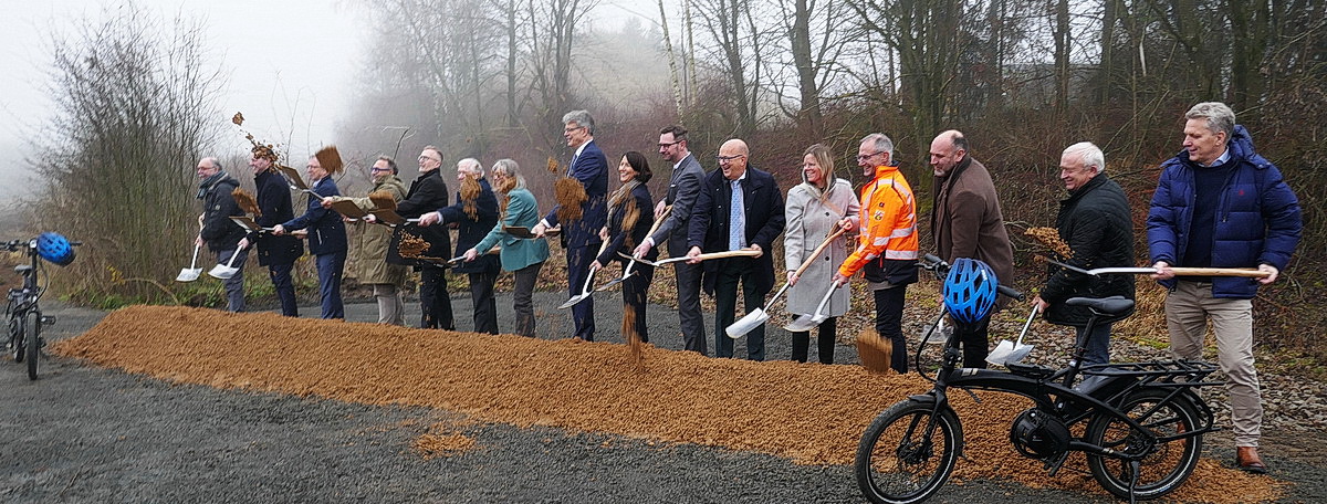 „Endlich“ – so das Echo auf den symbolischen Spatenstich, der am Freitag, dem 12. Dezember 2025, auf der ehemaligen Bahntrasse in unmittelbarer Nähe des Stihl-Werkes im Weinsheimer Industriegebiet vollzogen wurde, um so auch offiziell den Baubeginn des Radweges zwischen Prüm und Gerolstein zu feiern. Viel Prominenz hatte sich eingefunden, um dieses Ereignis gebührend zu würdigen. Denn nach rund 20 Jahren Bemühungen, vielerlei Diskussionen und Querelen, die sogar verschiedene Gerichte beschäftigten, konnten sich seit etwa ca. 2 Jahren die vielen Befürworter des Radweges freuen: Der von der überwiegenden Mehrheit der Bevölkerung gewünschte Radweg konnte gebaut werden. Die Planung des rund 22 km langen Radweges auf der ehemaligen Trasse der Bahnstrecke zwischen Prüm und Gerolstein war fertig und auch die Finanzierung war gesichert. Es konnte also losgehen: In der Zeit von November/Dezember 2024 bis Februar 2025 wurde die gesamte Strecke , die bereits fast vollständig „zugewachsen“ war von einereinheimischen Firma „freigestellt“. Die vorhandenen Gleise und Schienen wurden von den Eigentümern (VG Prüm, Stadt Gerolstein) verkauft und von einer Fachfirma abgebaut. Zur Zeit werden die letzten Gleise im demontiert, so dass dem eigentlichen Bau des Radweges nichts mehr im Wege steht und die Bagger im Frühjahr rollen werden. (Bericht und Fotos:W.R.)